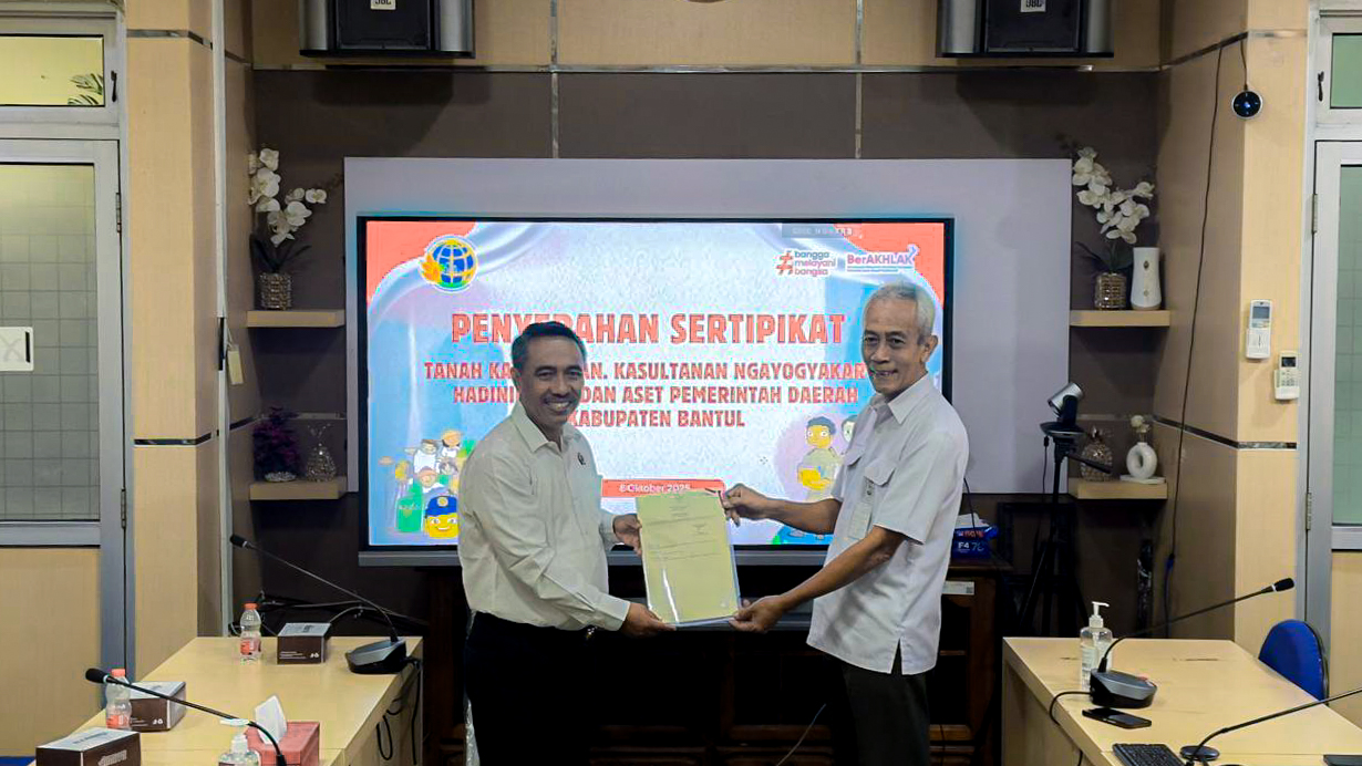 Penyerahan Sertifikat Tanah Kelurahan atas nama Kasultanan dan Tanah Aset Pemkab Bantul